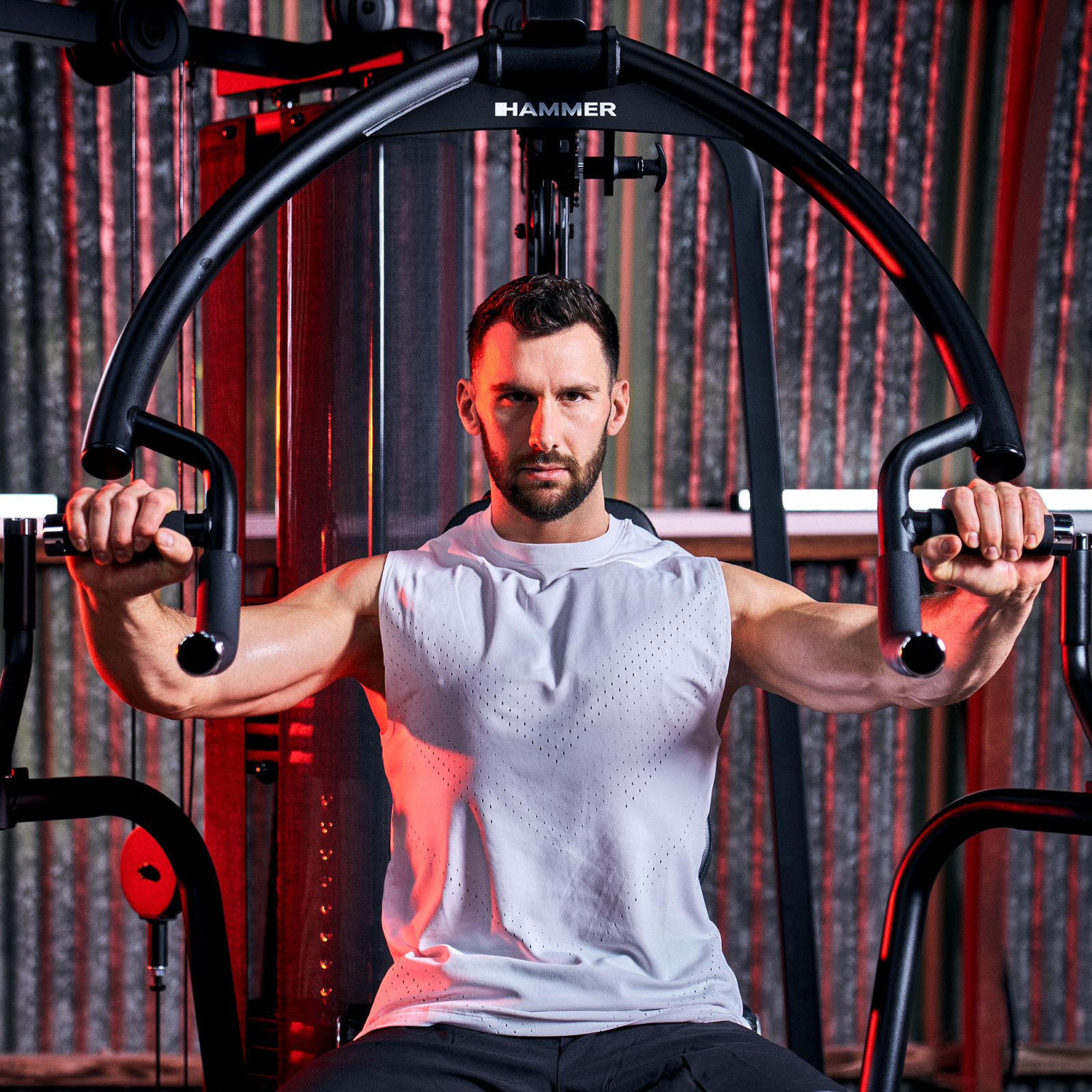 - Es handelt sich bei diesem Kraftgerät um ein Trainingsgerät der Klasse H, nach DIN EN 957-1/2.