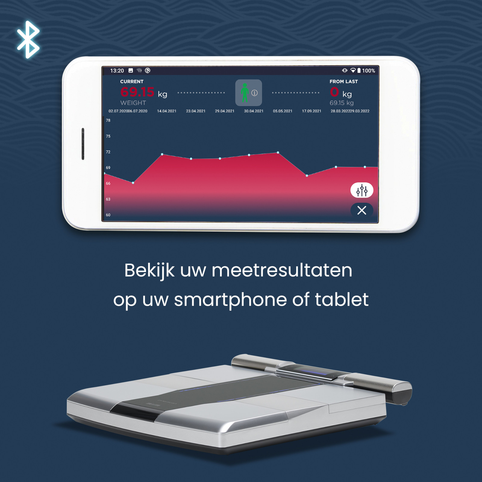 - Houd je voortgang bij met meer dan tien verschillende statistieken - van spierpercentage tot visceraal vet